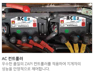 우수한 품질의 이탈리아 ZAPI 컨트롤러와 내구성이 뛰어난 유닛등 우수한 부품을