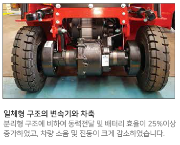 장착 AC 타입의 Controller와 Motor를 장착하여 지게차의 성능을 안정화하였으며,