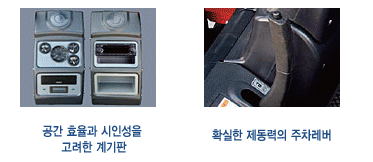 그리고 소음과 태양의 복사열을 차단하는 고급 내장재, 대용량의 에어컨, 작업의 활력을 더해 주는 CD 플레이어 등으로